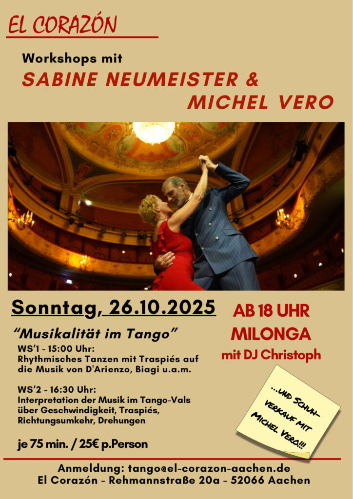 Um unseren monatlichen Newsletter mit den aktuellen Veranstaltungen zu erhalten, schreibe bitte eine kurze e-Mail an tango@el-corazon-aachen.de.